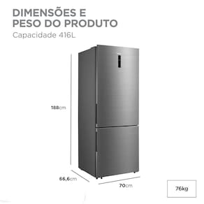 NãoA Geladeira Frost Free Inverse 416L Inverter cor Inox Midea entrega estilo e praticidade para o dia a dia. Com o refrigerador na parte superior, você tem tudo que precisa sempre à vista. Sua tecnologia Inverter proporciona resfriamento rápido e garante a estabilidade da temperatura, preservando os alimentos por mais tempo. Além disso, contribui para uma maior economia de energia e baixo nível de ruído.A geladeira também traz a comodidade do Flexi-Volt, e seu Painel Touch aciona diversas funções, como o controle de temperatura grau a grau, com apenas um toque. Já a função Turbo Freezer atinge temperaturas mais baixas em menos tempo, enquanto o Modo Compras alcança rapidamente temperaturas mais baixas no refrigerador. Por fim, ela ainda possui classificação energética A+++, que garante até 30% de economia de energia em comparação ao padrão A, segundo o Inmetro.