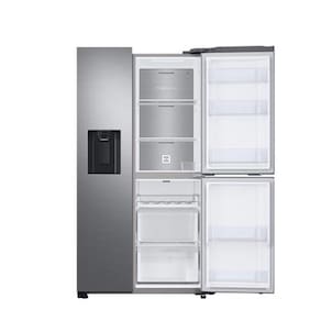 Armazene e organize seus alimentos com mais eficiência e conveniência. A Side by Side RS65 de 3 portas possui 2 portas de geladeira e 1 de freezer. Com essa divisão da geladeira, ela minimiza a perda de ar frio em até 55%, para que você economize energia e mantenha tudo bem organizado.
