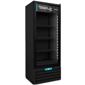 Características do Produto: Modelo: VF55AH Marca: Metalfrio Cor: Preto Altura: 186 cm Largura: 67,5 cm Comprimento: 80,1 cm Peso: 94,95 Kg Capacidade Total Líquida: 509 Litros Quantidade de Portas: 1 Porta Tipo de Freezer: Vertical Frost Free: Não