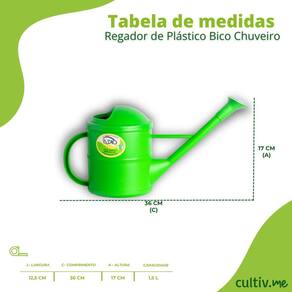 Informações/Dicas/Usos * A cor do regador à venda é Verde. * Quaisquer outras cores, vasos, plantas, suportes, acessórios e dimensões mostrados nas imagens são apenas ilustrativos.