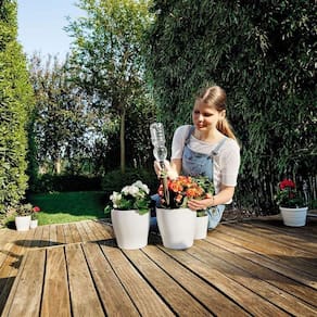 Para deixar em casa as preocupações durante excursões, viagens e férias, a solução é aquaflora holiday, o sistema autônomo de irrigação para plantas em vaso. Simplicidade: para ativar a irrigação, será suficiente colocar uma garrafa de água na estaca, fazer um pequeno furo para permitir a eliminação do ar em excesso, colocar a estaca na terra e regular o fluxo de água desejado. Distribuição de água contínua e dosagem regulada: o sistema dispensa a água gota a gota continuamente, sem permitir a formação de estagnações danosas para as plantas, dosando a distribuição da água através da prática torneira, que se encontra na parte dianteira da estaca. Irrigação eficaz: aquaflora holiday, graças à grelha especial de distribuição, dispensa a água diretamente em contato com as raízes, evitando assim o excessivo desperdício e evaporação da mesma, garantindo o bem-estar da planta. adaptabilidade: pode ser utilizado para qualquer tipo de vaso, independente da forma e dimensão. Utilização fora e dentro de casa: pode ser utilizado para plantas em vaso em interiores e exteriores.Fabricado na itália. Ean: 8004779023309 Marca: Não Informado