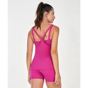 Uma peça fácil e leve que completa o visual com estilo e sofisticação. A modelagem é mais solta e cavada. O tecido seca rápido, tem proteção UV e toque suave. O decote redondo e intermediário proporcionam mais conforto e liberdade para a prática de exercícios.