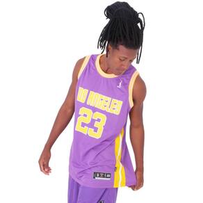 Represente a história da cidade de Los Angeles e o lendário número 23. Tecido de malha leve e respirável ajuda a manter você fresco e confortável. O acabamento DRY remove o suor da sua pele para uma evaporação mais rápida, ajudando você a ficar seco e focado no jogo. Modelagem folgada projetada para movimento fácil e irrestritoDetalhes do produto