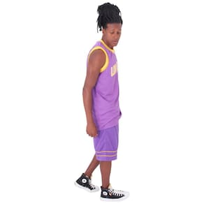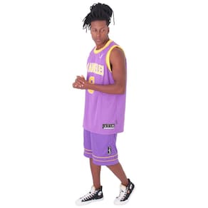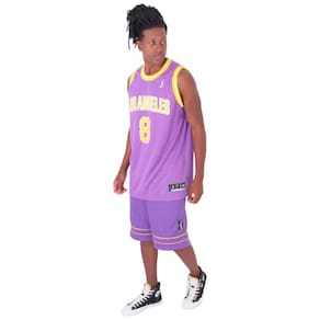 Represente a hitória da cidade de Los Angeles e o lendário número 8. Tecido de malha leve e respirável ajuda a manter você fresco e confortável. O acabamento DRY remove o suor da sua pele para uma evaporação mais rápida, ajudando você a ficar seco e focado no jogo. Modelagem folgada projetada para movimento fácil e irrestritoDetalhes do produto