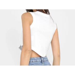 Camiseta Cropped. Meia Malha 30 1. Estampa Frontal.