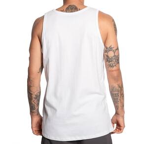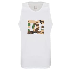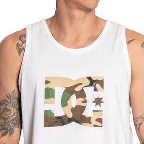 Regata Dc Shoes feita em modelagem standard fit, meia malha 30.1, estampa frontal e etiquetas personalizadas.