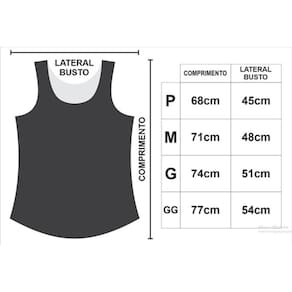 GG: Circunferência do Busto: 708cm / Comprimento: 77cm;