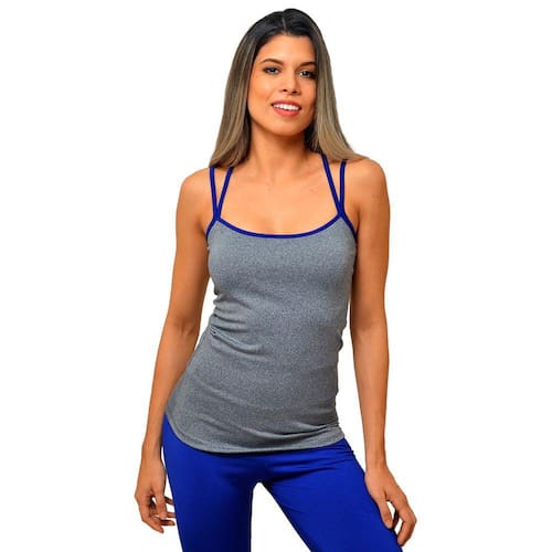 Essa regata será sua grande aliada para completar seu look fitness. É uma malha bem maleável, com muito elasticidade e flexibilidade que se adaptam aos movimentos do corpo. Tecido ideal para ser utilizada em moda casual, moda festa e até moda praia. Alça dupla na cor azul.
