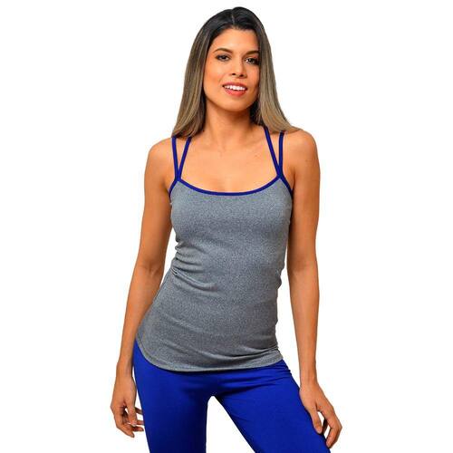 Essa regata será sua grande aliada para completar seu look fitness. É uma malha bem maleável, com muito elasticidade e flexibilidade que se adaptam aos movimentos do corpo. Tecido ideal para ser utilizada em moda casual, moda festa e até moda praia. Alça dupla na cor azul.