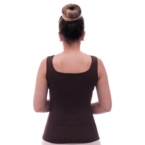Regata feminina decote redondo, marrom, cor clássica, em tecido LIGHT CO2 biodegradável (fio AMNI SOUL ECO, o primeiro fio de nylon biodegradável do mundo), com fator de proteção solar 50FPS+ UVA e UVB.