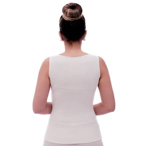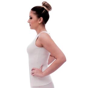 Regata feminina decote canoa, cor palha clássica, em tecido LIGHT CO2 biodegradável (fio AMNI SOUL ECO, o primeiro fio de nylon biodegradável do mundo), com fator de proteção solar 50FPS+ UVA e UVB.