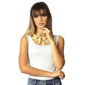 Regata feminina decote redondo, cor palha clássica, em tecido LIGHT CO2 biodegradável (fio AMNI SOUL ECO, o primeiro fio de nylon biodegradável do mundo), com fator de proteção solar 50FPS+ UVA e UVB.
