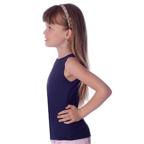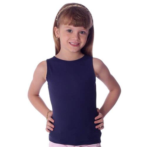 Regata infantil feminina decote canoa azul marinho, clássica e atemporal, em tecido LIGHT CO2 biodegradável (fio AMNI SOUL ECO, o primeiro fio de nylon biodegradável do mundo), com fator de proteção solar 50FPS+ UVA e UVB.