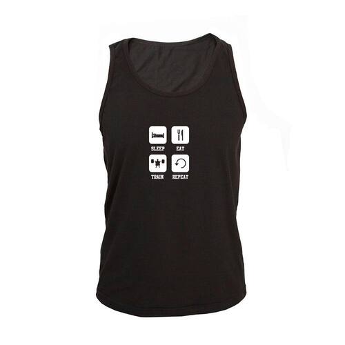Regata Masculina Algodão Sleep Eat Train Repeat Básica - Preto - G