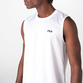 Regata masculina confeccionada em malha de poliéster reciclado, indicada para treinos de baixa e média intensidade. Sua modelagem regular, com ombros largos e gola careca em ribana, proporciona conforto durante o uso. Elaborada para causar menos impacto ao meio ambiente, seu tecido conta com a tecnologia FLOW, que garante rápida secagem e eliminação do suor, mantendo o corpo na temperatura ideal para a prática esportiva. Possui cavas com acabamento em viés pespontado e logo Fila Letter aplicado.