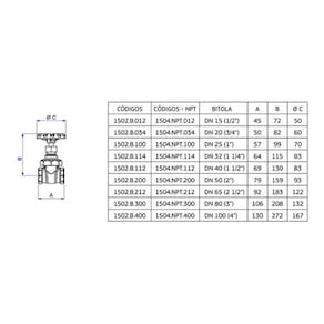 Registro Gaveta Bruto 2 Deca - 1502.B.200Registro Gaveta Bruto 2'' Deca OriginalCód.: 1502.B.200Bitola: DN 50 2'' Registro de gaveta uso semi industrial 2 DN50 bruto Deca BenefíciosOs produtos Deca são sempre uma boa escolha para a sua obra, já que a marca tem tradição e qualidade reconhecidas no mercado, além de um acabamento impecável das peças.Características Técnicas Registro de gaveta para uso semi industrial, com bitola de 2'.TIPO DE ROSCA DE ENTRADA: BSP NBR 8133TIPO DE ROSCA DE SAÍDA: BSP NBR 8133PRESSÃO MÁX FUNCIONAMENTO MCA: 140PRESSÃO MÍN FUNCIONAMENTO MCA: 2 Código de barras 7894200052050 Código do Fornecedor 1502.B.200 Comprimento cm 8,500 Cor Cromado Garantia 10 anos Largura cm 7,400 Altura cm 21,000Material Latão Peso g 1735,000 Marca DecaATENÇÃO: imagem meramente ilustrativa.