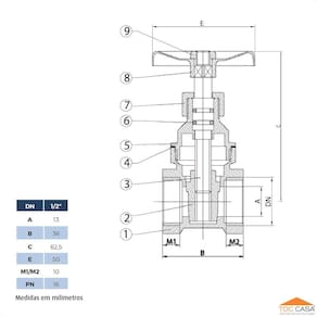 REGISTRO GAVETA INDUSTRIAL. PN 16 LATÃO FORJADO 1/2”