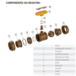 cuidados - o aperto da porca deve ser feito manualmente e o necessário para se obter o ajuste de vedação encosto da ; - não utilize ferramentas; - s tubulações ligadas ao registro devem estar alinhadas com o mesmo, para não transmitir esforços mecânicos; - o registro não deve ser utilizado como união; - não utilize com temperatura de água acima dos 60c, pois poderá danifi cá-lo. - deve ser utilizado totalmente aberto ou fechado, nunca semi-aberto, pois isso danifica as vedações; - não deve ser embutido em paredes, foi projetado somente para uso externo. Imagens meramente ilustrativas. Demais itens da ambientação não acompanham o produto.