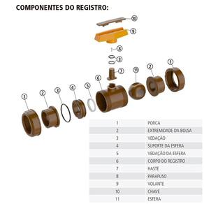 cuidados - o aperto da porca deve ser feito manualmente e o necessário para se obter o ajuste de vedação encosto da ; - não utilize ferramentas; - s tubulações ligadas ao registro devem estar alinhadas com o mesmo, para não transmitir esforços mecânicos; - o registro não deve ser utilizado como união; - não utilize com temperatura de água acima dos 60c, pois poderá danifi cá-lo. - deve ser utilizado totalmente aberto ou fechado, nunca semi-aberto, pois isso danifica as vedações; - não deve ser embutido em paredes, foi projetado somente para uso externo. Imagens meramente ilustrativas. Demais itens da ambientação não acompanham o produto.