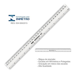 Características: - medidas em milimetros e polegadas - cor cristal transparente. - alta resistencia. - possui gravação das escalas em relevo. - certificada pelo inmetro, padrão superior de qualidade. - tamanho: 30 cm ou 12 polegadas