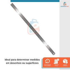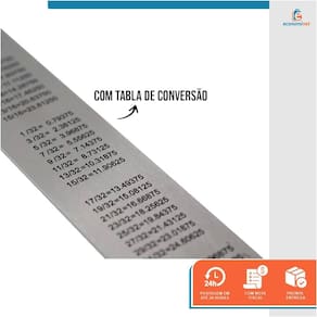 A Régua Aço é ideal para determinar medidas em desenhos ou superfícies, medição em escala de milímetros e polegadas, utilizada em vários segmentos, como: costura e patchwork, desenhos, marcenaria, construção civil, indústrias, entre outros. Produzida em aço inox, oferece alta resistência, possui tabela de conversão de unidades no verso e excelente para trabalhos de corte com estilete.CARACTERÍSTICAS TÉCNICAS:Material: Aço inoxMedidas: 100cm - 24” (comprimento) x 28mm (largura) x 1,0mm (espessura)Graduação: Milímetros e polegadasGrau de circunferência: 90°Tipo de régua geométrica: ProjetistaMarca: StarferRef.: 11995683