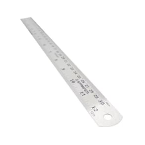 CARACTERÍSTICAS TÉCNICAS: Material: Aço inox Medidas: 30cm - 12 comprimento x 25mm largura x 0,7mm espessura Graduação: Milímetros e polegadas Grau de circunferência: 90 Tipo de régua geométrica: Projetista Marca: Starfer Ref.: 11995640 Ean: 7891638047443