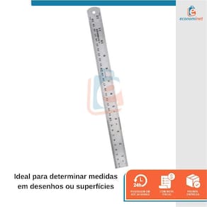 A Régua Aço é ideal para determinar medidas em desenhos ou superfícies, medição em escala de milímetros e polegadas, utilizada em vários segmentos, como: costura e patchwork, desenhos, marcenaria, construção civil, indústrias, entre outros. Produzida em aço inox, oferece alta resistência, possui tabela de conversão de unidades no verso e excelente para trabalhos de corte com estilete.