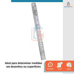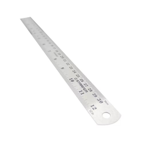 CARACTERÍSTICAS TÉCNICAS: Material: Aço inox Medidas: 30cm - 12 comprimento x 25mm largura x 0,7mm espessura Graduação: Milímetros e polegadas Grau de circunferência: 90 Tipo de régua geométrica: Projetista Marca: Starfer Ref.: 11995640 Marca: Não Informado Ean: 7891638047443