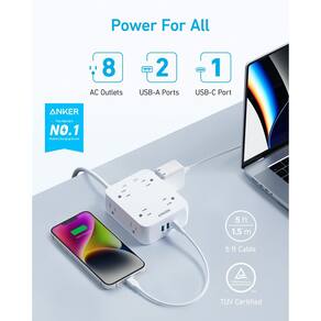 - Alimentação 11 em 1: possui 8 tomadas CA, 2 portas USB-A e 1 porta USB-C, o suficiente para manter uma sala inteira ligada.