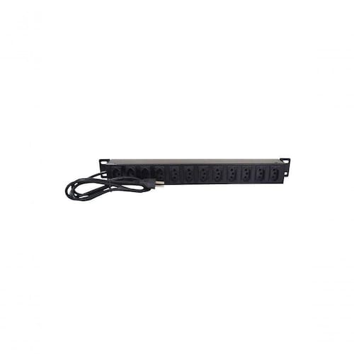 Os plugues padrão NBR14136 de 20A com pinos redondos de 10mm garantem uma conexão segura. A estrutura é tratada com anticorrosivos e desengraxantes biodegradáveis, e a furação de 1U para porca gaiola facilita a instalação em racks de 19 polegadas. Com temperatura de operação entre -20C e +80C, esta régua é ideal para ambientes variados.