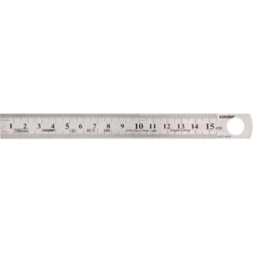Fabricada em aço inox, proporcionando maior resistência à oxidação/corrosão Graduação da escala: mm Comprimento da escala de aço: 150 mm Material da escala: aço inoxidável Largura da escala: 17,0 mm Espessura da escala: 0,7 mm Tipo de marcação da escala: baixo relevo 1 escala Marca: Não Informado