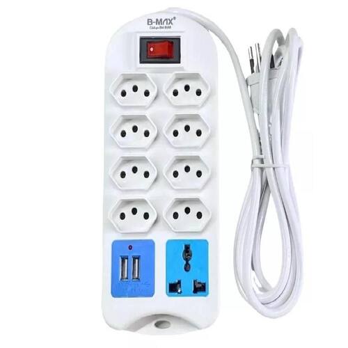 Extensão Elétrica 8 Tomadas Régua Com 2 Usb Com Cabo 2 Metros