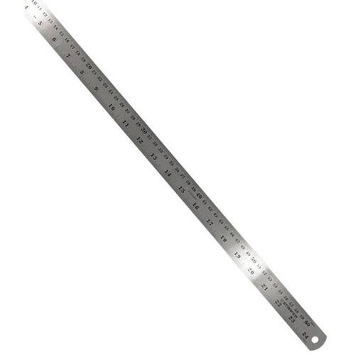 Medidas: 60cm 600 milimetros / 24 polegadas face 1 Conversor de medidas, in para mm face 2 escala em milímetros e polegadas espessura da régua: 1mm Ean: 7891638047436