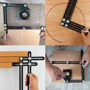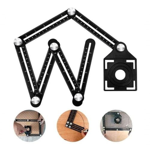 Ferramenta de modelo multifuncional - Régua de medição para trabalhos com cerâmica, porcelanato, entre outros. Multi modelo 6 réguas de medição para vários ângulos, ferramenta dobrável com guia de broca, telha de vidro, e calibres para trabalhar com madeira. Substitui a trena na hora de colocar piso, por exemplo.