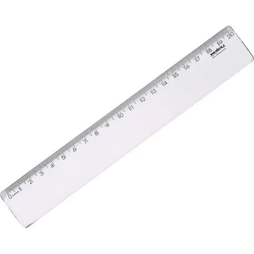 Comprimento de 20cm facilita medições em cadernos, folhas e projetos.
