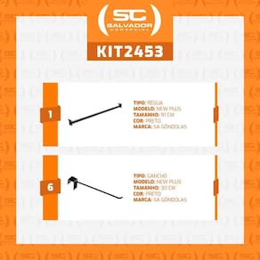 Kit - régua para organização de gondola 91cm + 6 ganchos simples preto new plus - sa gondolas