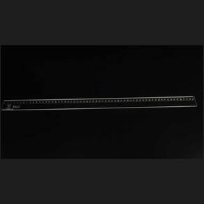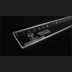 Régua de acrilico cristal transparente sem rebaixo, corte das arestas reta e cantos arredondados, gravação da escala por rebaixo à laser.