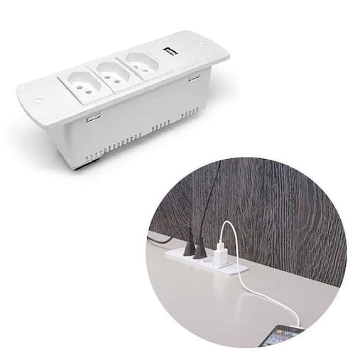 Régua de caixa série 170 linha facility Ref: qm 18704.02 3 tomadas eleétricas + 1 bloco para rj45 keystone Marca: qtmov Simplicidade e eficiência. A caixa de tomada foi desenvolvida para proporcionar versatilidade e conectividade ao seu móvel. Com excelente custo-benefício este modelo de caixa de tomada comporta até 4 módulos. A caixa de tomada é indicada para montagem em mesas de reunião, salas de conferência, salas de treinamento, showrooms e escritórios. Fabricação: termoplástico de engenharia abs/pc-v0 Dimensional externo:170 x 56 x h=61mm . Gabarito de corte:134 x 53mm. Características elétricas:3 tomadas elétricas + 1 bloco para keystoneTensão e corrente máxima: 250v ac / 10a. Características do produto:Produto compatível com clean box e slide box.Capacidade: 4 blocos elétricos ou dados. Produto não fornecido com conector rj45, apenas os blocos para fixação do mesmo. Atenção: imagem meramente ilustrativa, podendo conter alguma diferença em sua tonalid Marca: Dutotec Industrial Ltda