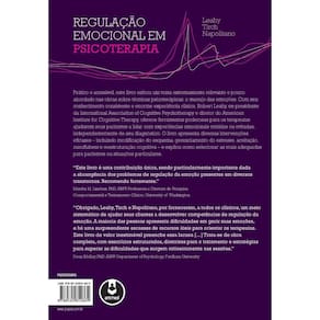 Título do livro : Regulação Emocional em Psicoterapia Subtítulo do livro : Um Guia para o Terapeuta Cognitivo-Comportamental Autor : Leahy, Robert L. Idioma : Português Editora do livro : ARTMED EDITORA LTDA.,Guilford Capa do livro : Mole Ano de publicação : 2013 Quantidade de páginas : 332 Altura : 250 mm Largura : 175 mm Peso : 710 g Coautores : Tirch, Dennis#napolitano, Lisa a. Tradutores : Oliveira Ivo Haun de Gênero do livro : Direito, política e ciências sociais Subgêneros do livro : Psicologia Data de publicação : 01-12-2013