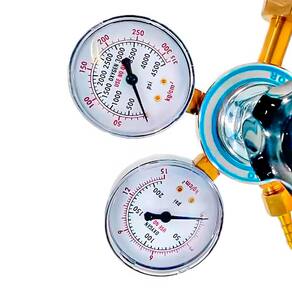 - Características: Modelo robusto e confiável, ideal para uso industrial, comercial e doméstico. Dois manômetros de leitura clara e precisa. Alta durabilidade e fácil manutenção. Corpo em latão forjado, resistente à oxidação e impactos. Precisão na leitura e controle fino de vazão. Indicado para cilindros de oxigênio.
