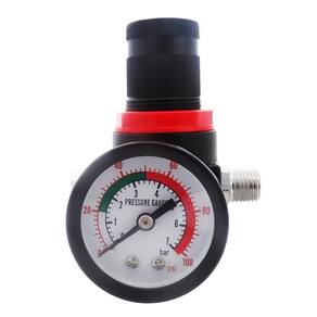 Descrição do produto: regulador de pressão com manômetro para ferramenta de aplicação de pintura - pro-55 pdr regulador de pressão é indicado para controlar a pressão de ar que entra na ferramenta de aplicação de pintura, quanto maior a distância entre o ponto de controle da pressão, e a ferramenta de aplicação maior será a variação da pressão devido à maior perda de carga. Portanto, para assegurar máximo desempenho, é importante realizar o controle de pressão na entrada de ar da ferramenta de aplicação de pintura. Características: - visor de vidro - roscas de entrada e saída: 1/4 - pressão máxima: 100 psi - pressão recomendada: 50 psi - peso aprox: 190grs
