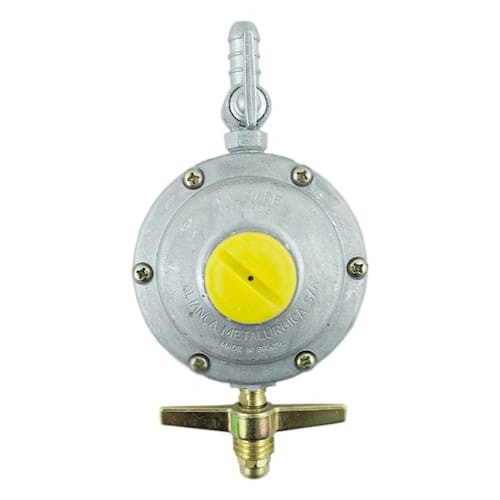Regulador para Gás 506/01 BT 2kg/h. ALIANÇA Especificações Técnicas: Recomendado para botijão com capacidade de: Até 13 kg Modelo do regulador de gás: Parafusado Vazão máxima do regulador de gás: 2 kg/hora Rosca de entrada do regulador de gás: Padrão botijão P13 Conexão de saída do regulador de gás: Espigão Peso:0.28 kg Profundidade:23.00 cm Altura:5.50 cm Largura:12.00 cm Garantia: 3 meses Utilizado em equipamentos com consumo de até 2kg/h de gás. Seu uso é ideal para fogões de 6 bocas, fogões semi-industriais de baixa pressão e fornos.