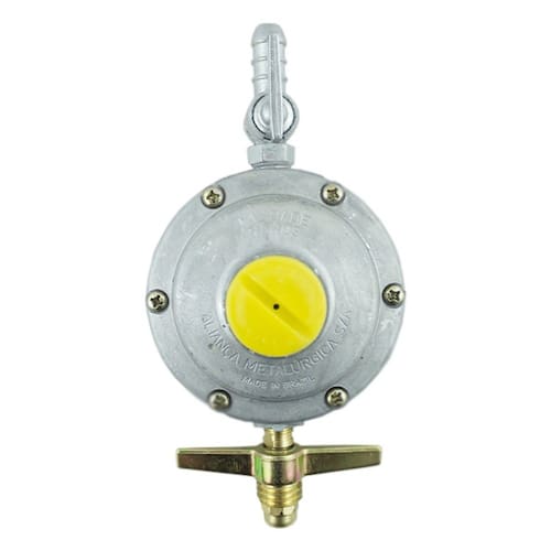 Regulador para Gás 506/01 BT 2kg/h. ALIANÇA Especificações Técnicas: Recomendado para botijão com capacidade de: Até 13 kg Modelo do regulador de gás: Parafusado Vazão máxima do regulador de gás: 2 kg/hora Rosca de entrada do regulador de gás: Padrão botijão P13 Conexão de saída do regulador de gás: Espigão Peso:0.28 kg Profundidade:23.00 cm Altura:5.50 cm Largura:12.00 cm Garantia: 3 meses Utilizado em equipamentos com consumo de até 2kg/h de gás. Seu uso é ideal para fogões de 6 bocas, fogões semi-industriais de baixa pressão e fornos. Ean: 7891249018559