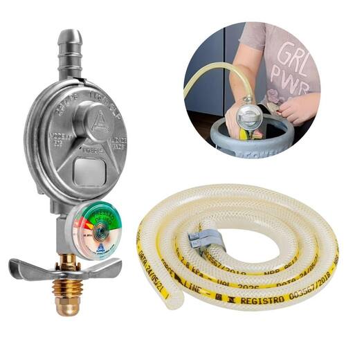 Regulador registro de gás de cozinha doméstico blindado com monômetro vazão 1kg/h aliança O registro de botijão de gás da marca aliança é a escolha ideal para quem busca segurança, praticidade e durabilidade. Projetado com materiais de alta qualidade, este registro oferece um controle eficiente do fluxo de gás, garantindo o funcionamento seguro e confiável do seu fogão, forno ou outros aparelhos a gás. Com este registro de gás da marca aliança, você saberá exatamente qual a pressão de trabalho do seu botijão assim terá sempre certeza se tem gás ou não, pois quanto menor a pressão mostrada no manômetro deste equipamento, menor a quantidade de gás existente lá. Caractéristicas - conexão de entrada: borboleta p13 - saída: 3/8 para mangueira - recomendável: uso doméstico - tipo : baixa pressão - utilizado em: glp gás de cozinha - vazão máxima: 1 kg/h de glp Material - borboleta de fixação em zamac e latão. - diafragma/obturador em borracha nitrílica. - corpo, tampa e registro em zamac e/ou alumínio. - componentes internos em zamac e aço. Espeficações técnicas Material: zamac, borracha nítrica, latão e aço : 5 anos Certificação inmetro: atende aos padrões rigorosos de qualidade e segurança Itens inclusos 01 registro regulador de gás Mangueira para gás de cozinha registro 80cm com abraçadeiras A solução ideal para quem busca segurança, durabilidade e eficiência na instalação de sistemas de gás. Desenvolvida com tecnologia de ponta, nossa mangueira oferece uma combinação única de materiais de alta qualidade e design inovador, garantindo o máximo desempenho e proteção em todas as situações. Com esta mangueira, você pode ter a tranquilidade de saber que sua conexão de gás está segura, confiável e durável. Diferenciais - resistência superior: pvc flexível reforçada com fio de poliéster, garantindo durabilidade e segurança. - conectores de alta precisão: vedação perfeita com abraçadeiras metálicas. - flexibilidade ideal: fácil instalação em espaços reduzidos, sem comprometer a integridade Especificações técnicas Material: pvc flexível fio de poliéster Comprimento: 80 centímetros Pressão nominal: 2,8 kpa Normal de segurança: abnt nbr 8613 Itens inclusos 01 mangueira de 80 centímetros Invista em segurança e qualidade. Escolha a mangueira de registro de gás premium para sua instalação e tenha a certeza de um produto que entrega o melhor em performance e durabilidade Marca: Não Informado