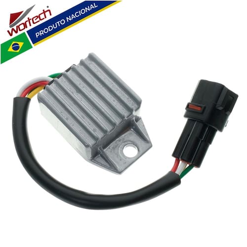 Marca: Wortech (Indústria Brasileira)Código:W-2006.../181Características do produto: - Tecnologia: Tiristor com circuito Shunt - Potência Máxima: 220W- Tensão de saída: 13,6 a 14,8V- Amperagem: 25A- Conector: Em Nylon de alta qualidade- Terminais: metálicos estanhados de alta condutividade - Dissipação: Carcaça em alumínio com alto poder de refrigeração- Dimensões da carcaça (Altura x Largura x Comprimento): 22 x 37 x 55 mm- Distância entre os furos: X - Espessura da parte de fixação: 5 mmConexões:- 01 > Conector de 4 vias com cabos de 150 mmItens Inclusos:- 01 > Regulador Retificador- 01 > Certificado de garantiaGarantia total de 12 meses