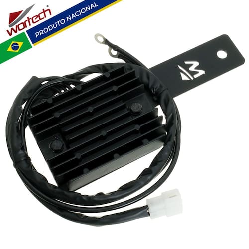 ATENÇÃO! Esse regulador retificador acompanha suporte para a instalação ser feita na parte frontal da motocicleta, tendo maior resfriamento na peça.