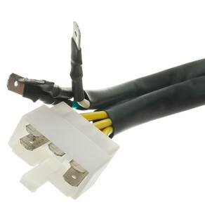 - 01 > Conector 6 vias com cabos de 250 mm - 01 > Cabo verde de 250 mm com terminal espada - 01 > Cabo preto de 250 mm com terminal espada - 01 > Cabo branco de 250 mm com terminal espada