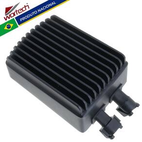 - Tecnologia: Tiristor com circuito aberto - Potência Máxima: 480W - Tensão de saída: 13,6 a 14,8V - Amperagem: 50A - Conector: Em Nylon de alta qualidade - Terminais: metálicos estanhados de alta condutividade - Dissipação: Carcaça em alumínio com alto poder de refrigeração - Dimensões da carcaça (Altura x Largura x Comprimento): 61 x 91 x 137 mm - Distância entre furos: 120mm