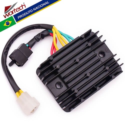 Marca: Wortech (Indústria Brasileira)Código:W-051168/83Características do produto: - Tecnologia: Circuito com Transistor (MOSFET)- Melhor Eficiência que os circuitos (Shunt fechado)- Temperatura de trabalho: de 40°C a 60°C- Potência Máxima: 620W- Tensão de saída: 13,6 a 14,8V- Amperagem: 80A- Chicote : Cabos de silicone de alta temperatura - Conector: Em Nylon de alta qualidade- Terminais: metálicos estanhados de alta condutividade - Dissipação: Carcaça em alumínio com alto poder de refrigeração- Dimensões da carcaça (Altura x Largura x Comprimento): 28 x 110 x 80 mm- Distância entre os furos: 80 mm - Espessura da parte de fixação: 12 mmConexões: - 01 > Conector 3 vias com cabos amarelos de 200 mm- 01 > Conector 4 vias com 2 cabos vermelhos e 2 cabos verdes de 80 mmItens Inclusos: - 01 > Regulador Retificador- 01 > Certificado de garantiaGarantia total de 12 meses