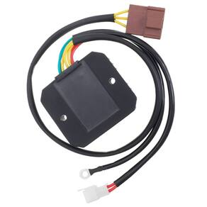 - Espessura da parte de fixação: 18 mmConexões:- 01 > Conector 3 vias com cabos amarelos de 260 mm- 01 > Conector 2 vias com 2 cabos vermelhos de 260 mm- 01 > terminal olhal com 2 cabos verdes de 260 mmItens Inclusos:- 01 > Regulador Retificador- 01 > Certificado de garantiaGarantia total de 12 meses